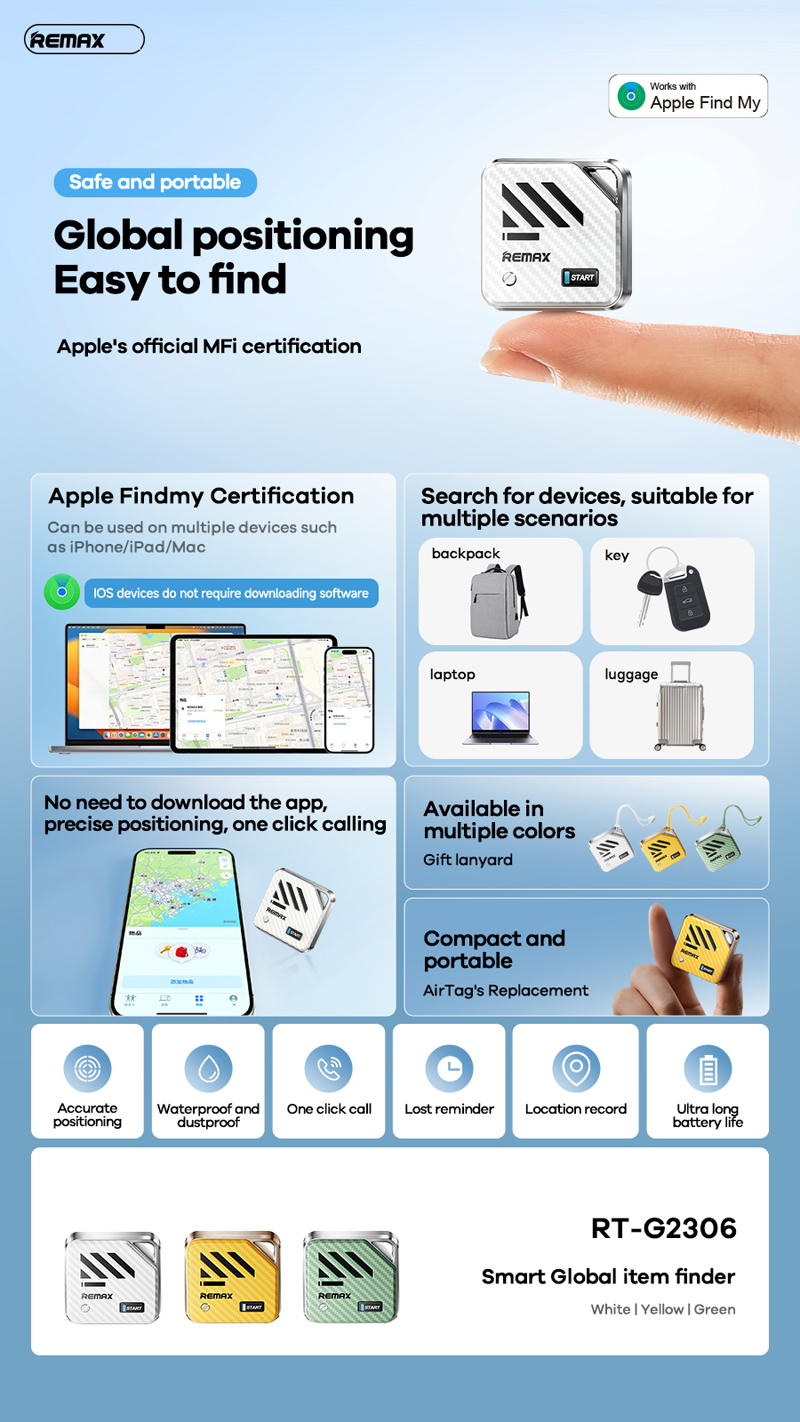 Thiết bị định vị GPS Remax G2306 là giải pháp hoàn hảo để theo dõi xe máy, ô tô, thú cưng, trẻ em và đồ vật cá nhân. Với thiết kế nhỏ gọn gắn móc chìa khóa và nhiều màu sắc lựa chọn, sản phẩm này sẽ mang lại sự tiện lợi cho bạn.